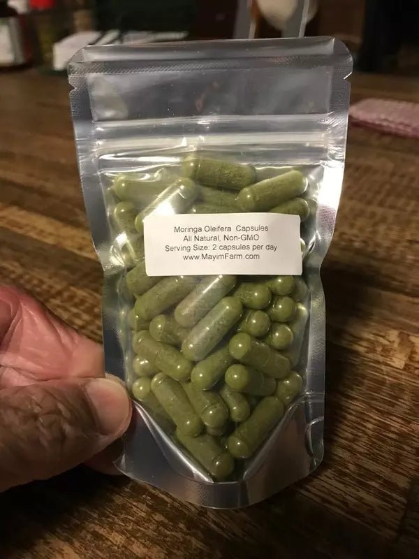 Ours is different. We grew the moringa trees. We harvested the leaves. We dried and powdered them here on the farm. When you open a pouch of Mayim Farm moringa capsules you're getting something fresh, traceable, and made by people who stand behind every batch.